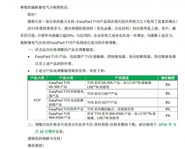 您好,感謝大家一直以來的鼎力支持,EasyPact TVS產(chǎn)品線即將進(jìn)行適當(dāng)?shù)膬r(jià)格調(diào)整,涉及此次價(jià)格調(diào)整的產(chǎn)品及調(diào)整幅度,詳見下表,新價(jià)格將于2016年6月25日零時(shí)生效。
